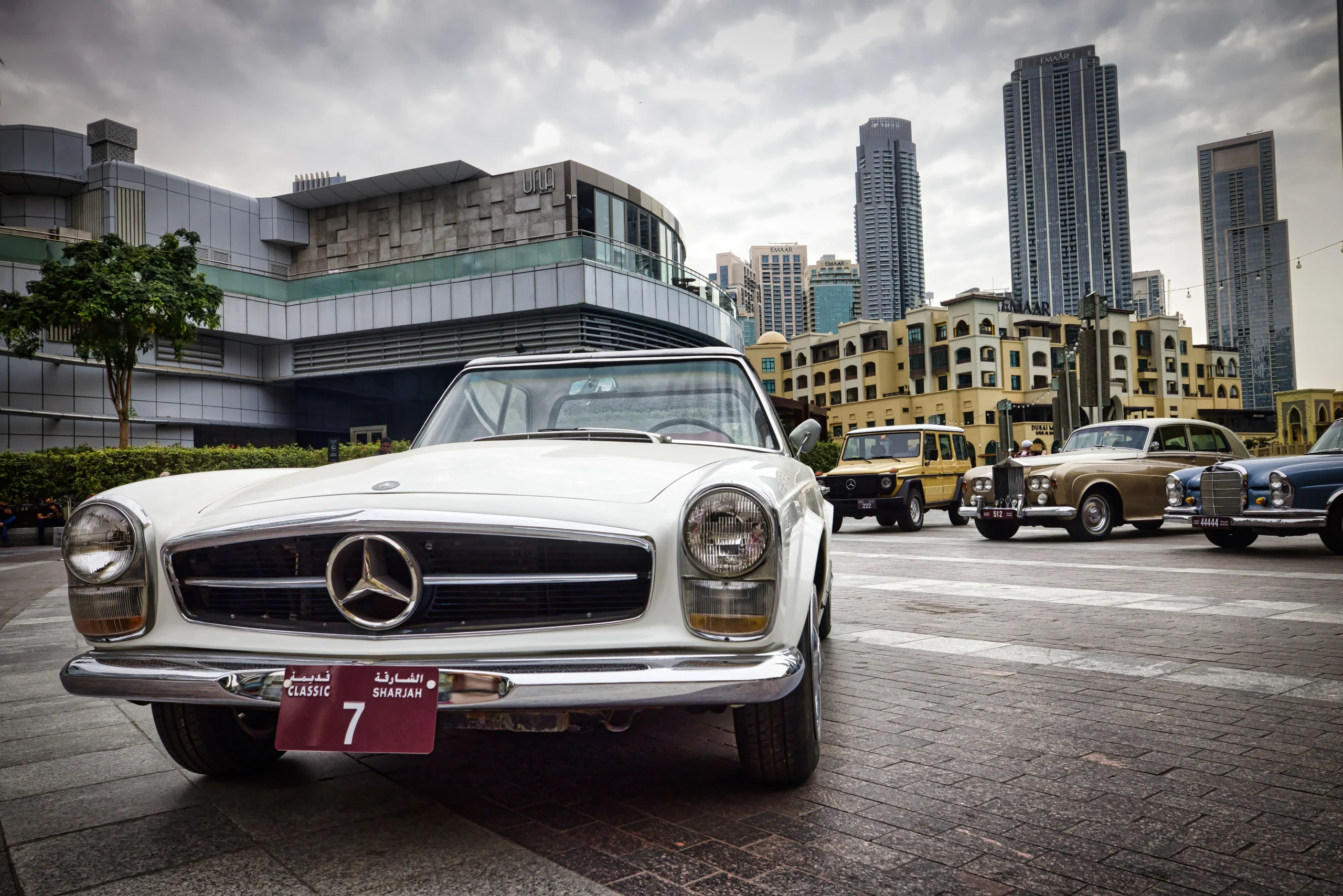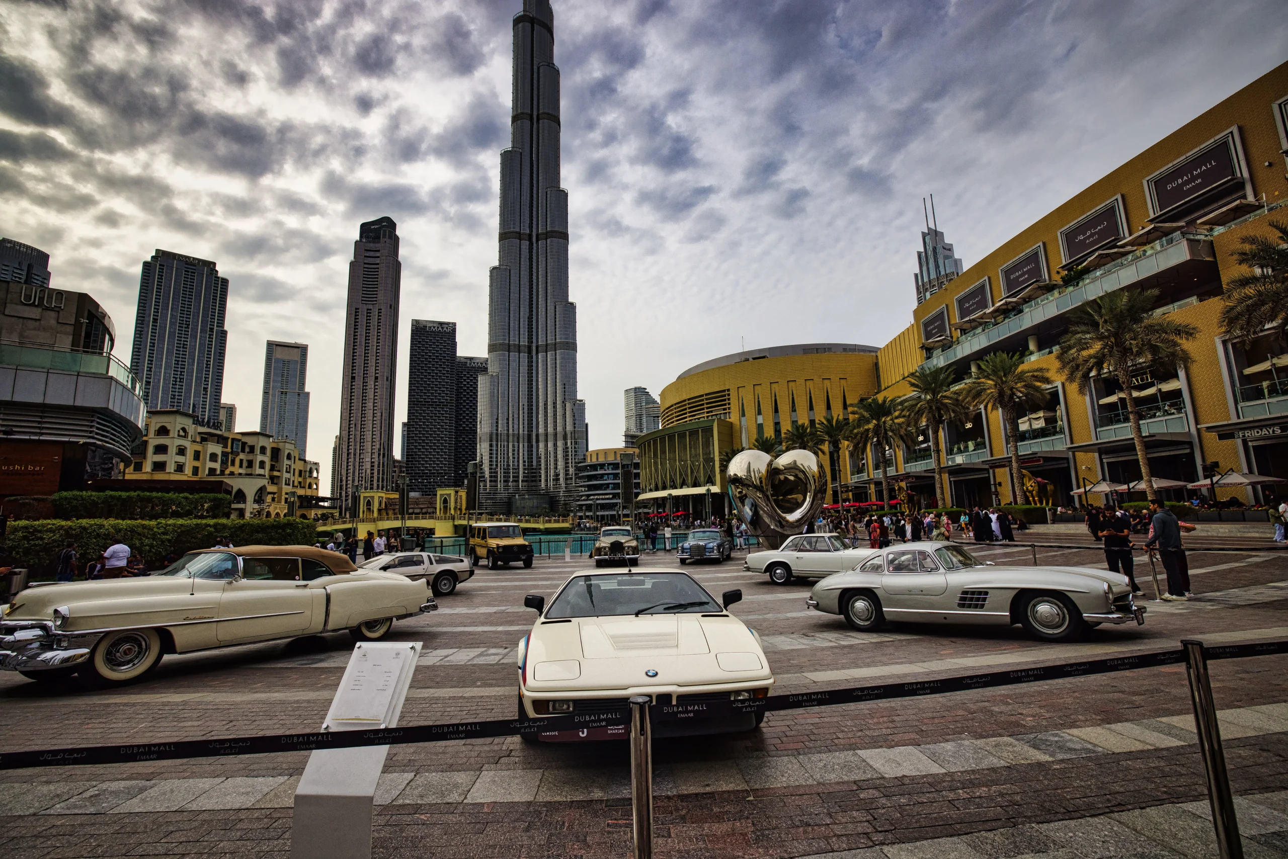 Classic Cars with Burj Khalifa – A Cinematic Contrast of Eras