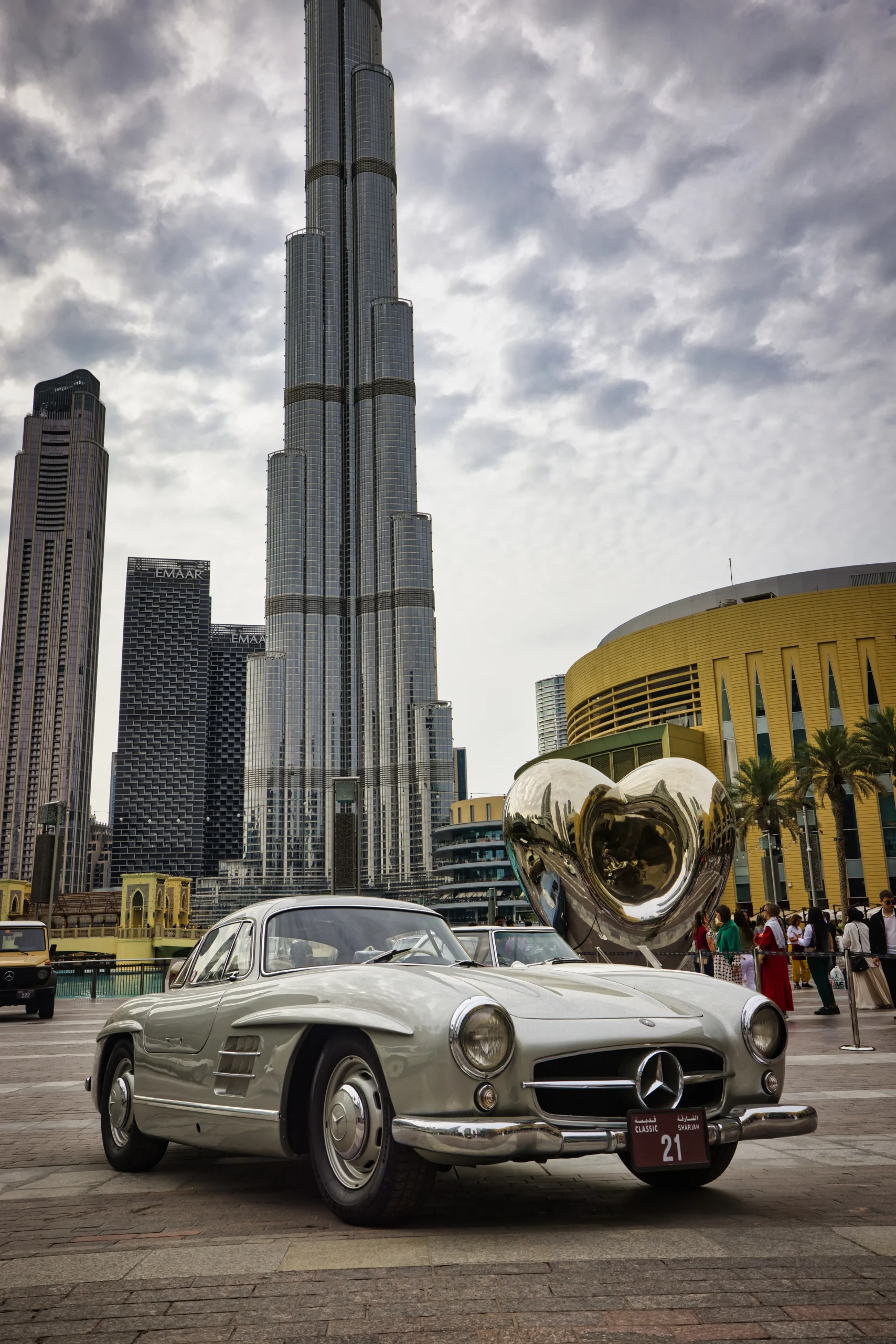 Classic Mercedes & Burj Khalifa – Timeless Design Meets Iconic Modernity